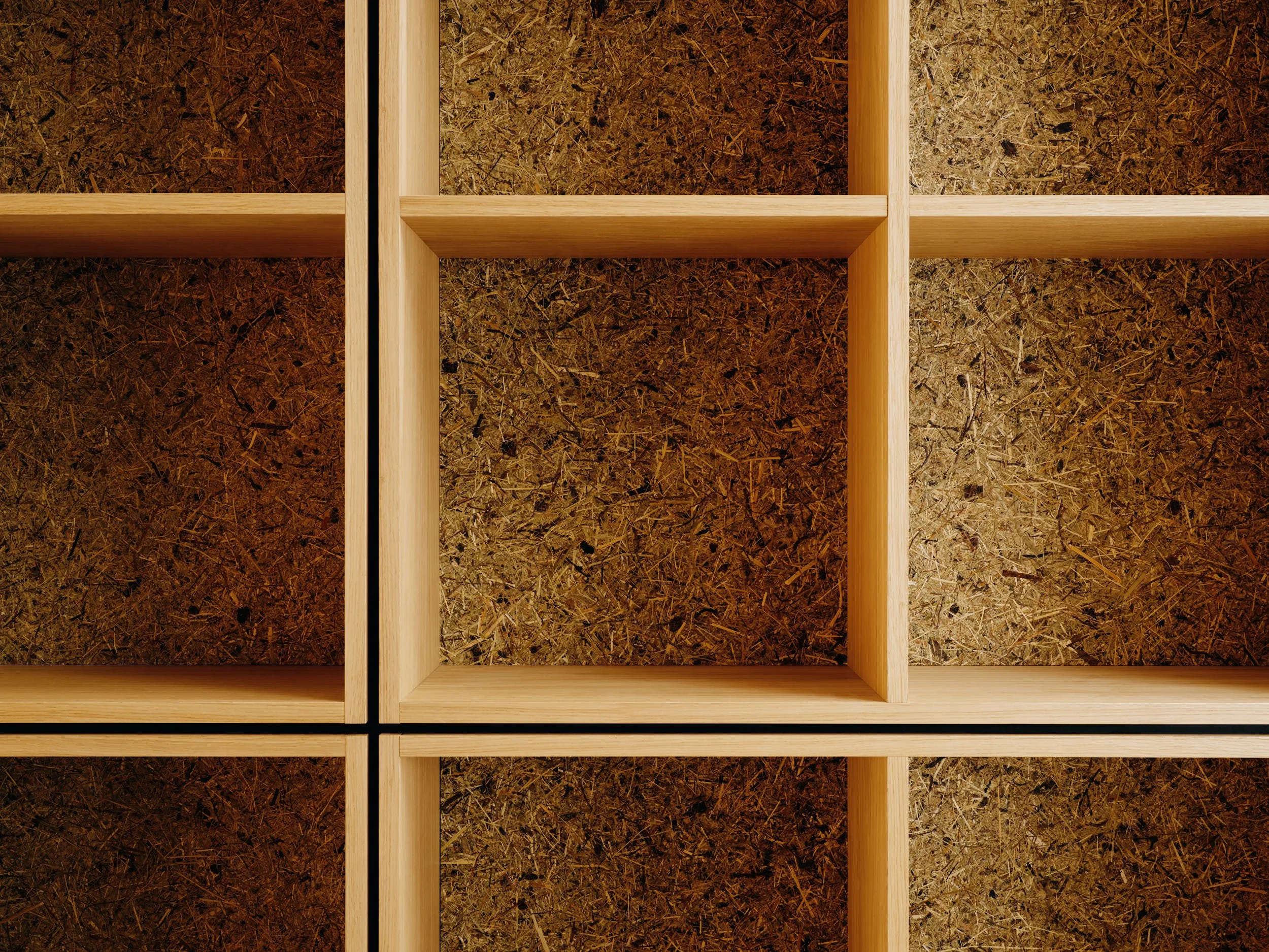 One of the defining features of the space is the wooden lattice ceiling. Composed of deep wooden grids and textured ceiling panels, it creates a sense of continuity through repetition while maintaining a relatively low height, producing an enveloping spatial atmosphere. The rhythmic lattice offers a universal sense of extension, while the material surface responds subtly to light, evoking the sensation of sitting beneath the spreading branches of a large tree. This atmosphere fosters a feeling of being gently held—of sharing space and being connected. Here, a relationship between people mediated through objects emerges: one that does not require direct confrontation, yet maintains an appropriate distance and sense of comfort. It is a relationship open to multiple future possibilities, quietly supported by material presence.